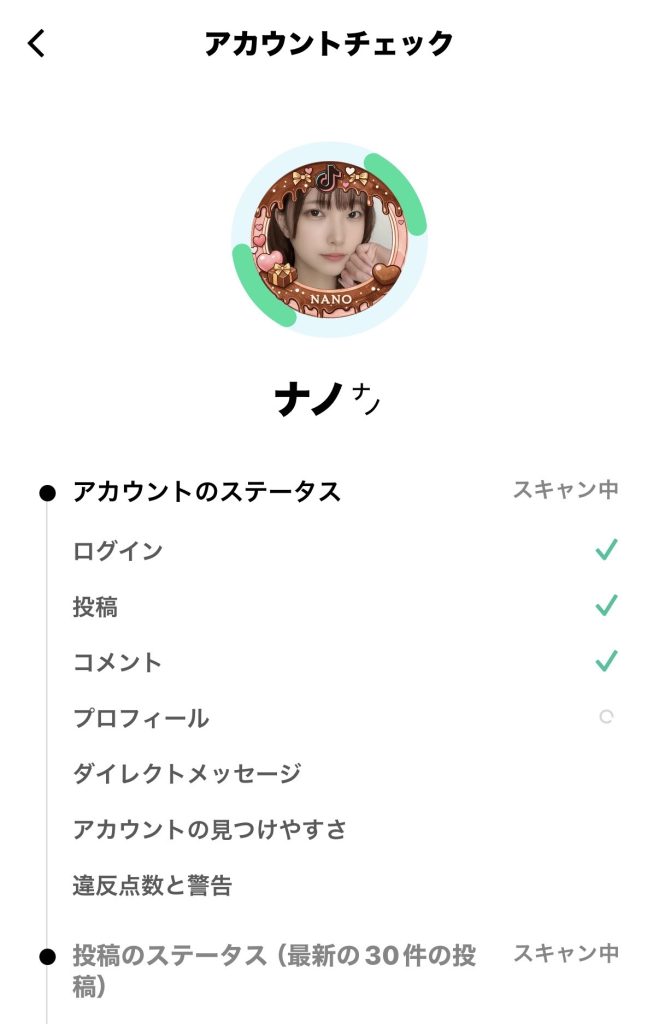 アカウントのステータスが自動スキャンされるので、待機します。